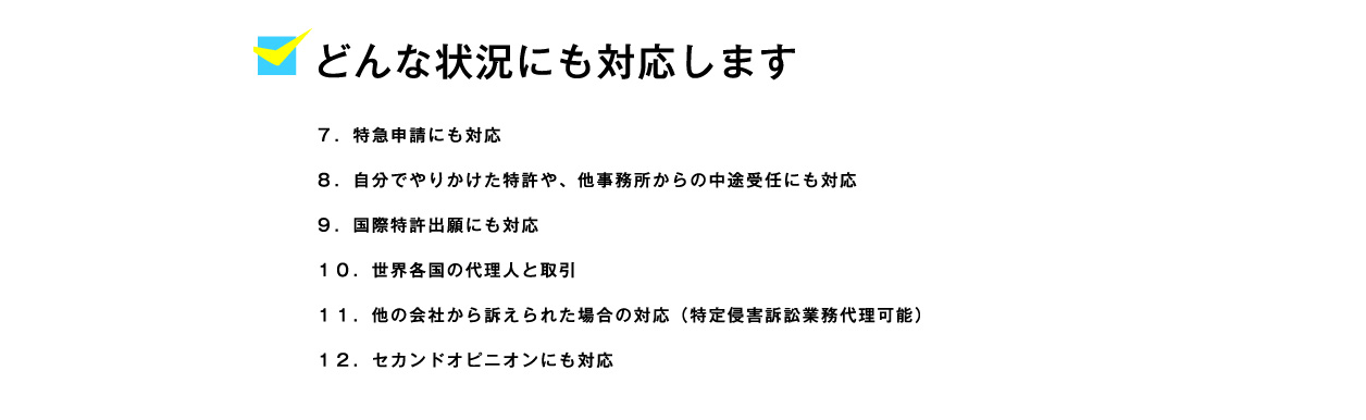 「オリジナル製品で売上を伸ばしたい!」という中小企業・ベンチャー企業の経営者の熱い思いに貢献すべく、知財の側面から徹底サポート。