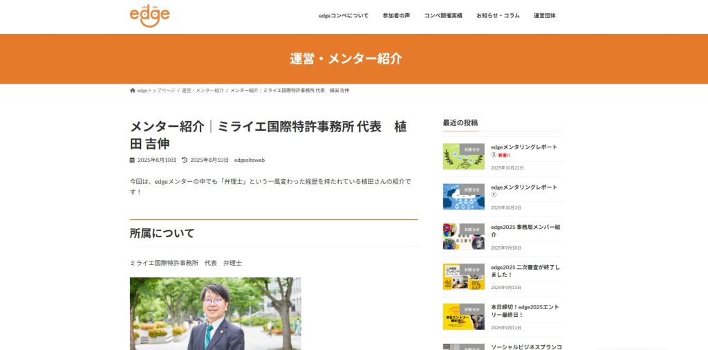 昨日は、社会起業家を目指す若者のためのビジネスプランコンペ「edge 2025」