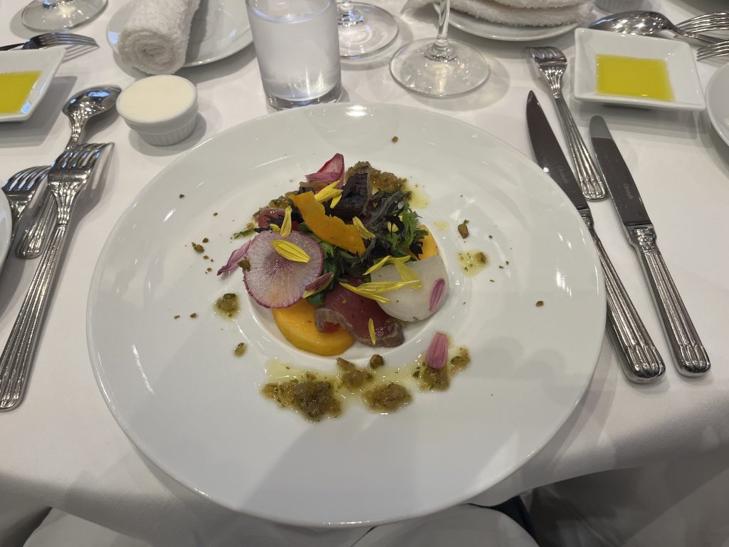 美しいワインと共に供されるコース料理は、五感すべてを楽しませてくれるものでした。
